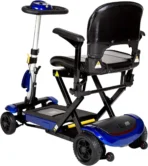 Denna elektriska, hopfällbara scooter är designad för daglig användning på kortare sträckor. Den erbjuder hög komfort och säkerhet tack vare vadderad sits, fällbara armstöd och höjdjustering av både sits och reglage.